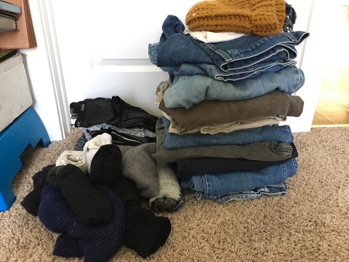 I have washed every piece of clothes in Nelson’s house over these last weeks. I have handled his socks, his underwear, his stained tshirts. I have stuck my hands in pants pockets to ensure they were empty. I’ve folded dress shirts and wondered if he ever wore them. Going through all his clothes I was able to identify the clothes that were his favorites – or at least the most often worn. I now know he kept socks that had lost their elacticty but didn’t have holes in his pants. I have come to realize most of his clothes weren’t orginally owned by him. I recognized so many of them as things we had given him.